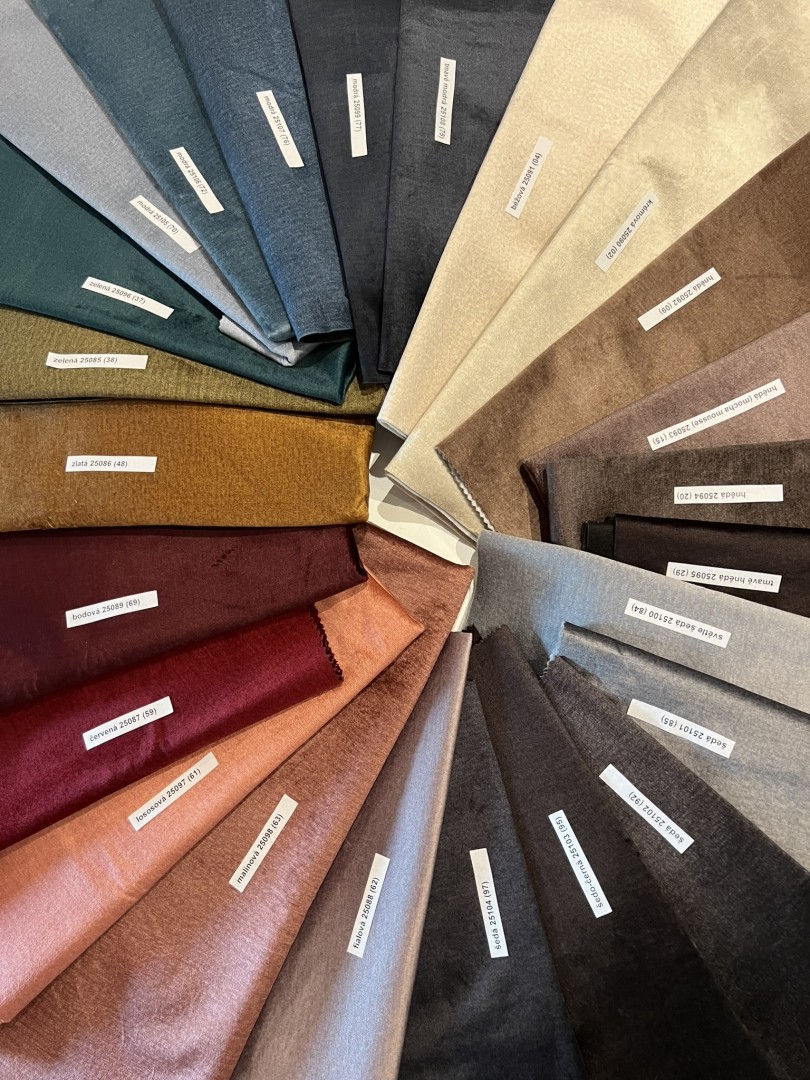 Vynaložili jsme maximální úsilí, aby barvy látek na fotografiích zodpovídali jejich přirozeným barvám. Nastavení monitora však může ovlivňovat sytost a odstín barvy.
