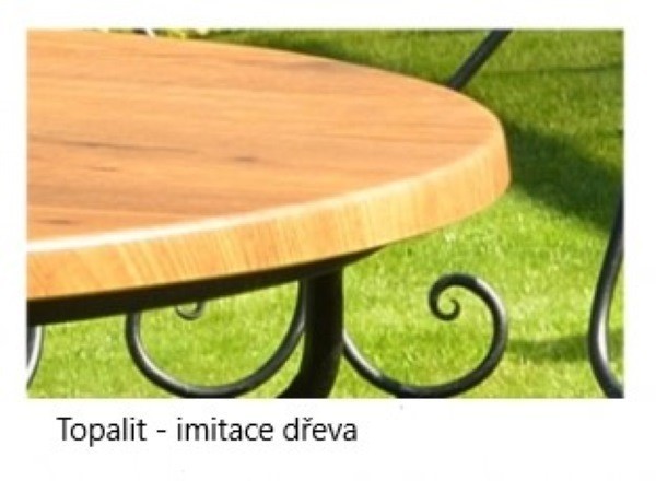 Možnost vybrat si ze tří variant stolových desek a to plech, tahokov (kovová síťovina) a topalit (imitace dřeva). Stolní deska má rozměry 80 x 80 cm.