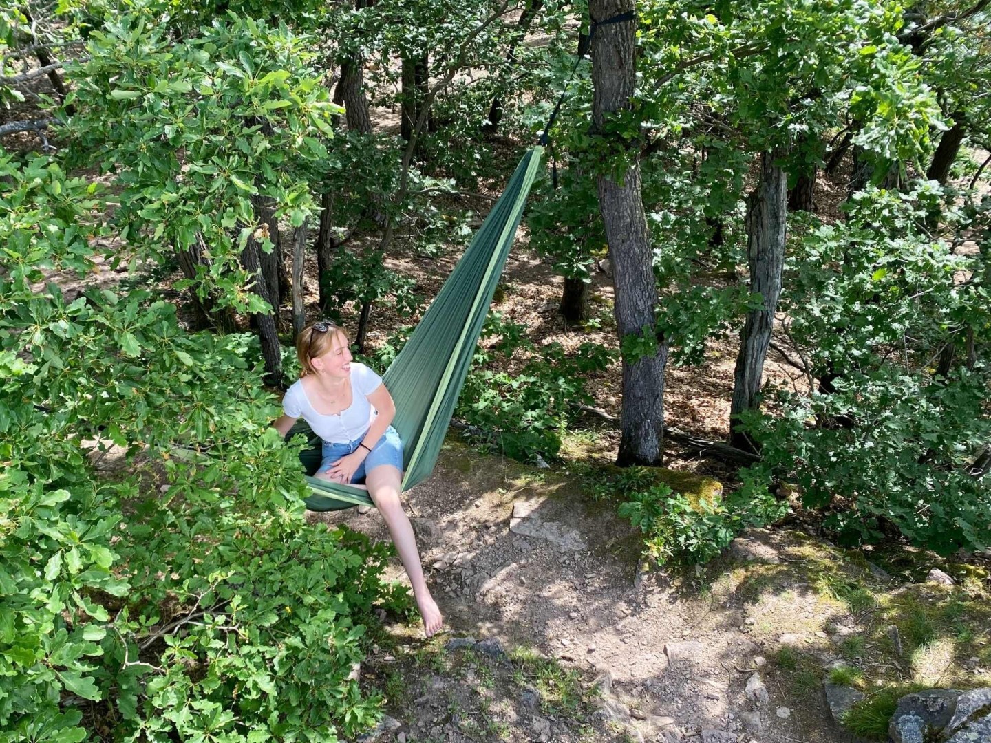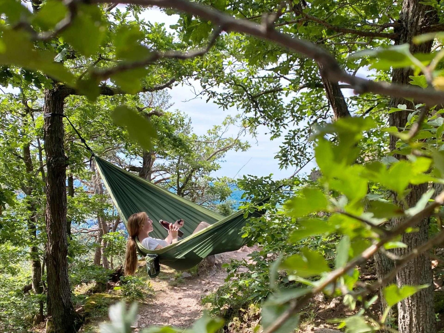 Celková hmotnost hamaky s popruhy je 0,8 kg, takže ji snadno sbalíte do batohu. Využít ji ale můžete i jako plážovou deku či stínítko proti slunci.