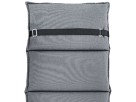 Standardní uchycení polstru: stuha s posuvnou sponou na zadní části opěrky a pomocí tkaniček v ohybu polstru.