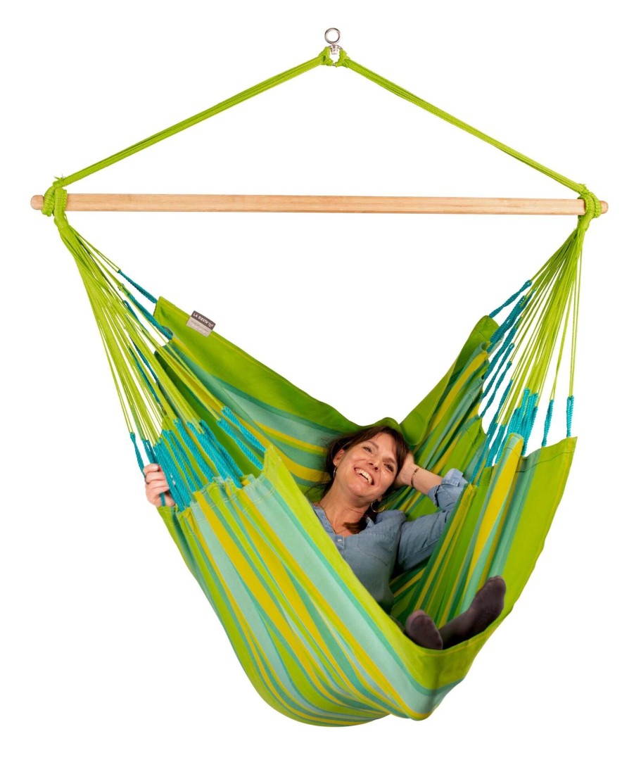 Kreslo disponuje velkým počtem závěsných šňůr, které rovnoměrně rozkládají hmotnost a proto je sezení velmi komfortní. Větší množství šňůr, stejně jako zdvojení útkových nití na okraji látky, zaručí pohodlí, které si můžete užívat mnoho let.