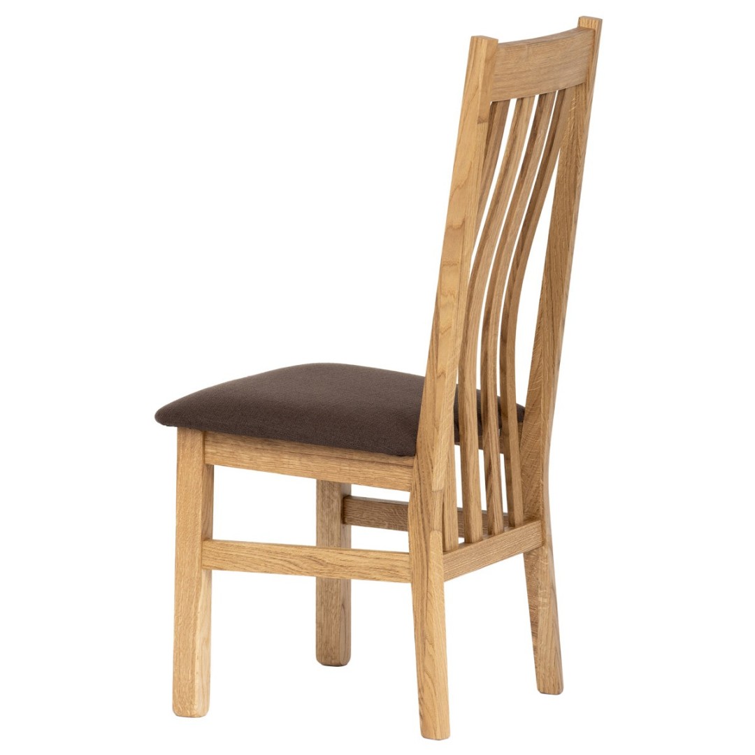 Jídelní židle z masivního dubového dřeva je demonstrací dokonalé řemeslné práce. Zaujme nejen svým rustikálním stylem, ale i perfektním zpracováním. Styl vychází z minimalistického severského designu, v temnějším nádechu přírodního odstínu. Tato barevnost skvěle vykreslí léta dubu a podtrhne její provedení. Čisté linie a vysoce kvalitní řemeslné zpracování dřevěného masivu nastavuje okouzlující akcenty a podtrhuje útulnou atmosféru v interiéru. Tato židle vás zve nejen k odpočinku, ale i k rozjímání s rodinou a přáteli, kde oceníte ergonomicky tvarované vzpěry opěradla, kopírující zakřivení páteře.