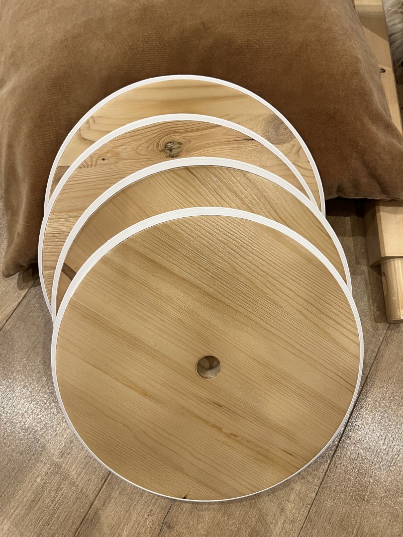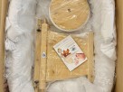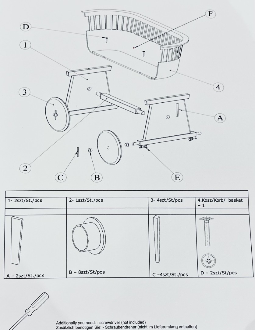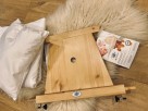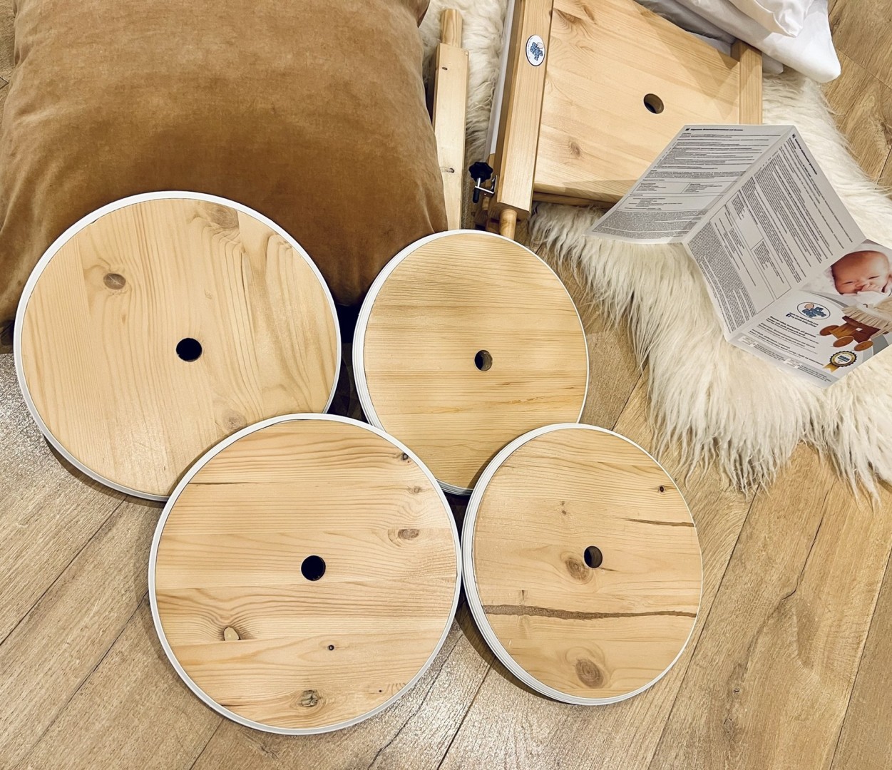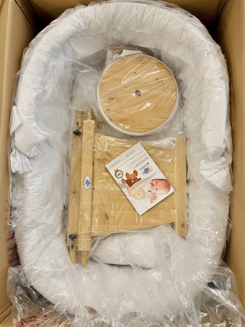- Dřevěný podvozek (výška 50 cm) v bílé barvě se 4 velkými dřevěnými koly, které se otáčejí lehce a tiše. Každé kolo má bílé gumové pneumatiky, které nezanechávají na podlaze žádné stopy. Výška podvozku usnadňuje ukládání a zvedání miminka.