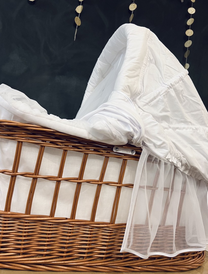 - Proutěný košík v bílé barvě s povlečením barvy dle vlastního výběru (svůj výběr označte vpravo při výběru provedení).