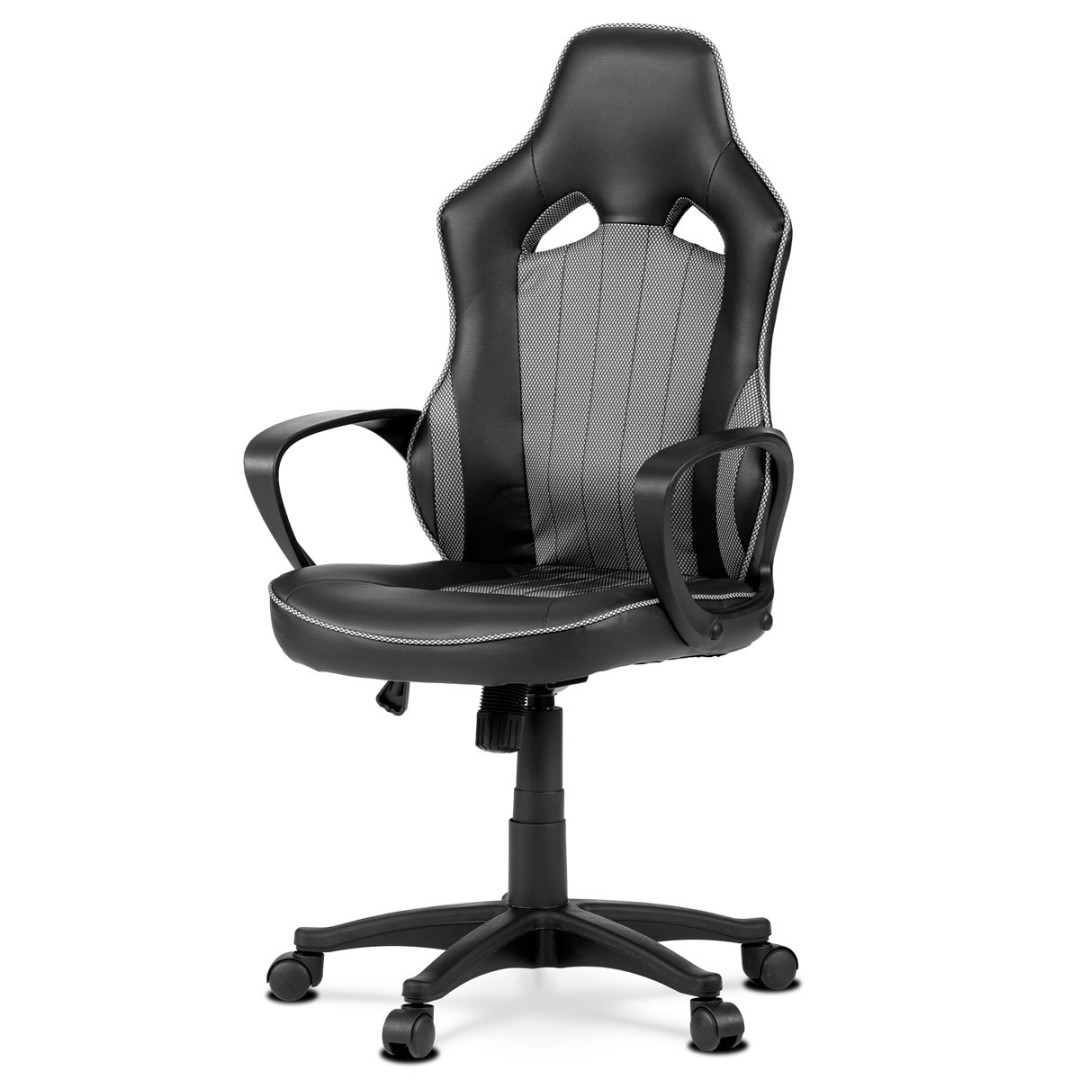 Elegantní HERNÍ ŽIDLE i KANCELÁŘSKE KŘESLO v kombinaci černé ekokůže a šedé strukturované látky