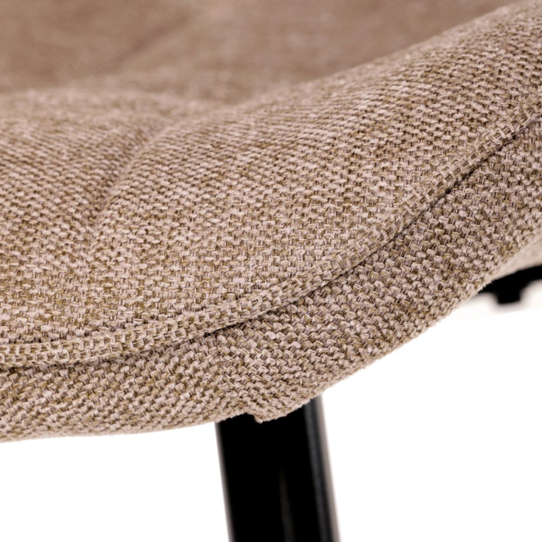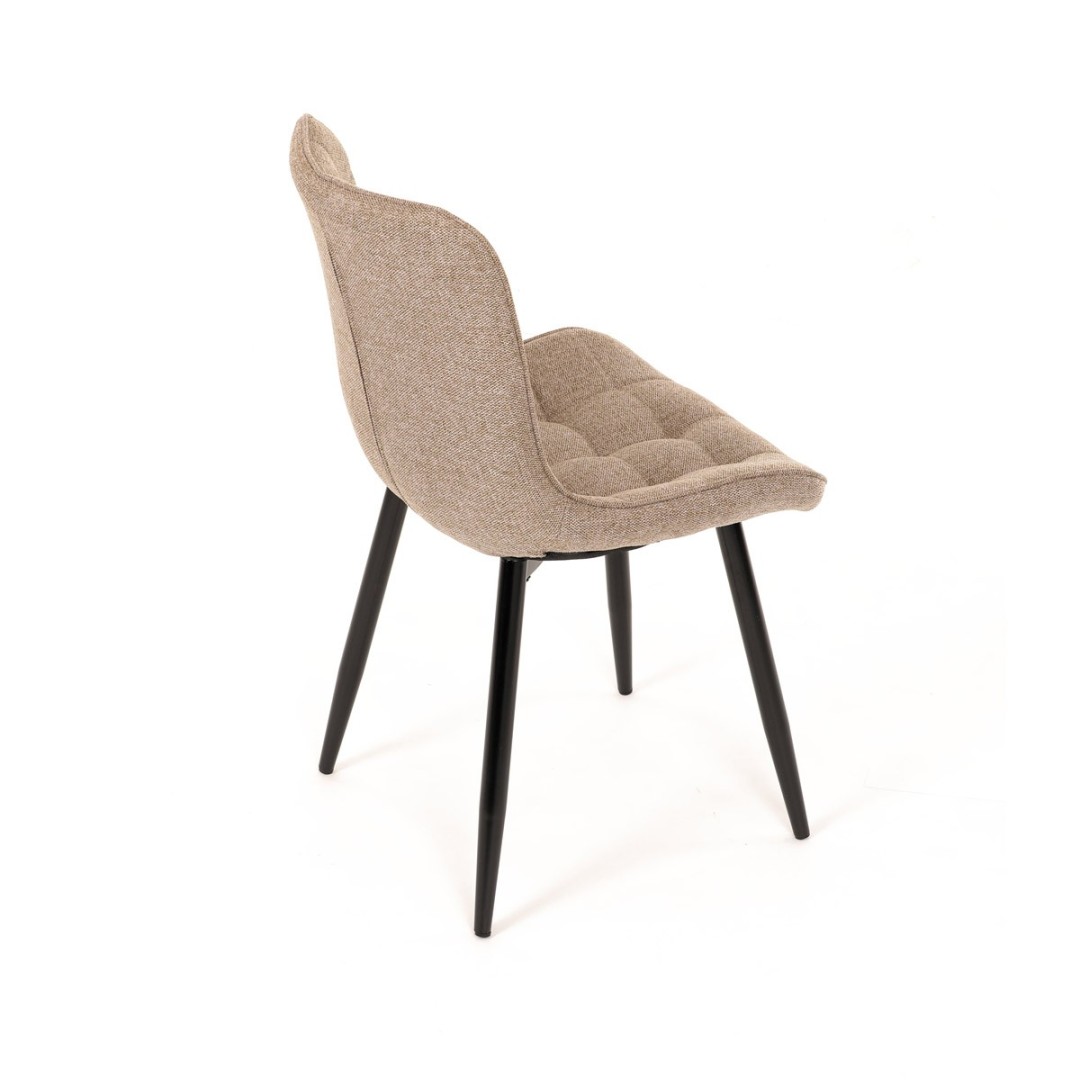 Moderní jídelní židle čalouněna jemně hrubou hnědou látkou s dekorativním prošíváním do čtverce. Tento potah z jemného plátna je nejen vizuálně přitažlivý, ale také luxusní na dotek a slibuje příjemné posezení po dlouhé hodiny.