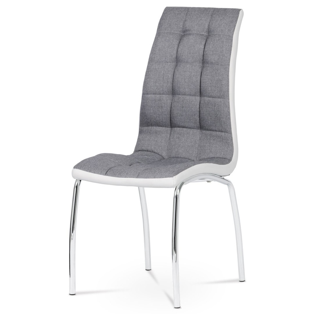 Moderní JÍDELNÍ ŽIDLE se čtyřnohou podnoží - šedá látka, bílá ekokůže - 44 x 98 x 60 cm