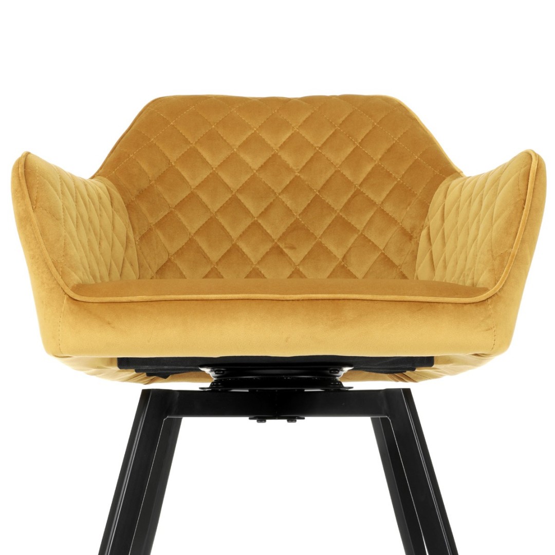 Skořepina sedáku a opěráku má potah z kvalitní látky v trendy hořčicově žlutém matném sametu. Polstrování je z PU pěny. Velmi dekorativním prvkem je výrazné kosočtvercové prošití vnitřních ploch v barvě potahu a paspule po obvodu celé skořepiny. Vybraná látka se také velmi dobře čistí.