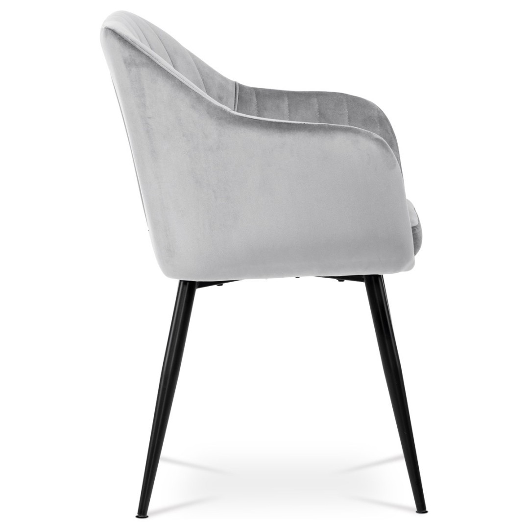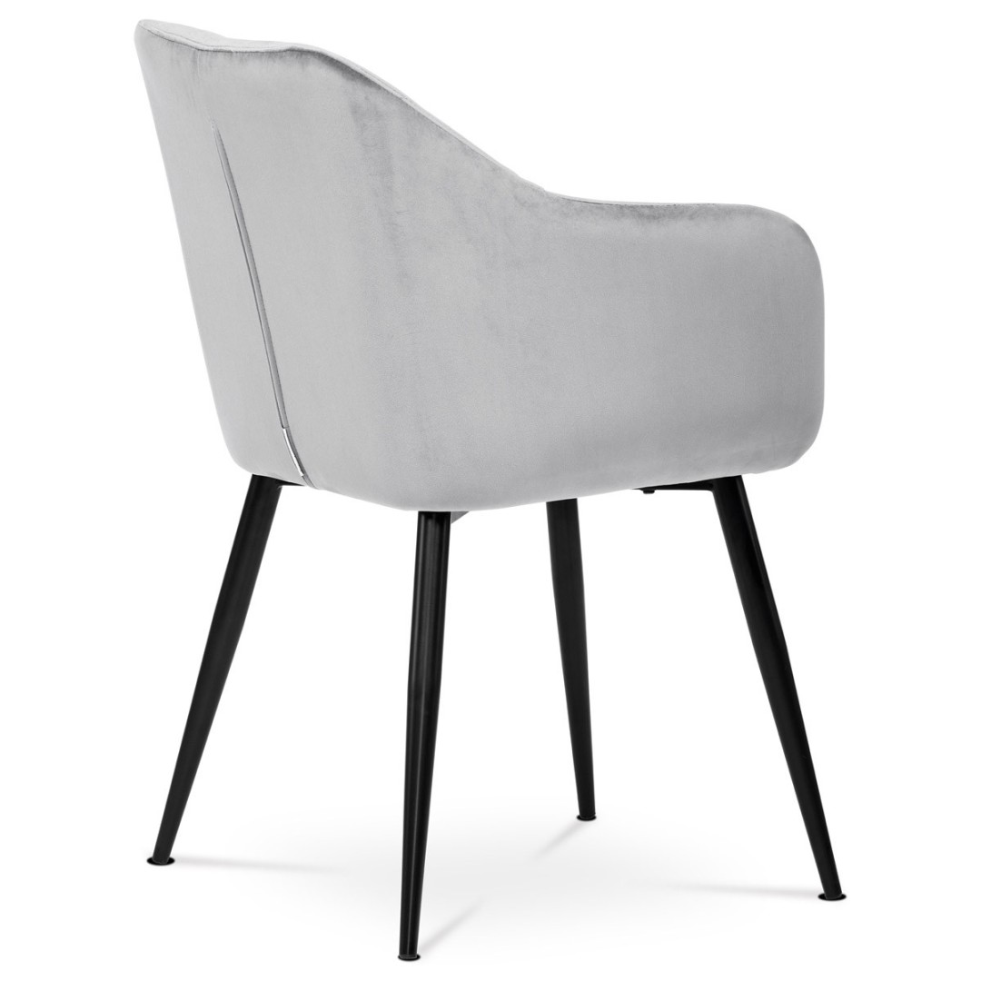 Dokonalý design, industriální styl a perfektní pohodlí je pro tuto židli samozřejmostí. Skořepina sedáku i opěradla má pevnou kovovou kostru, potah z velmi kvalitní sametové látky v matném provedení v trendy odstínu stříbrné. Polstrování je z PU pěny.