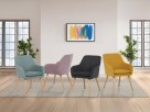 Potah židle je z hladké šedé látky. Masivní nohy z kaučukovníku zajišťují vynikající stabilitu. Nosnost židle je 120 kg.