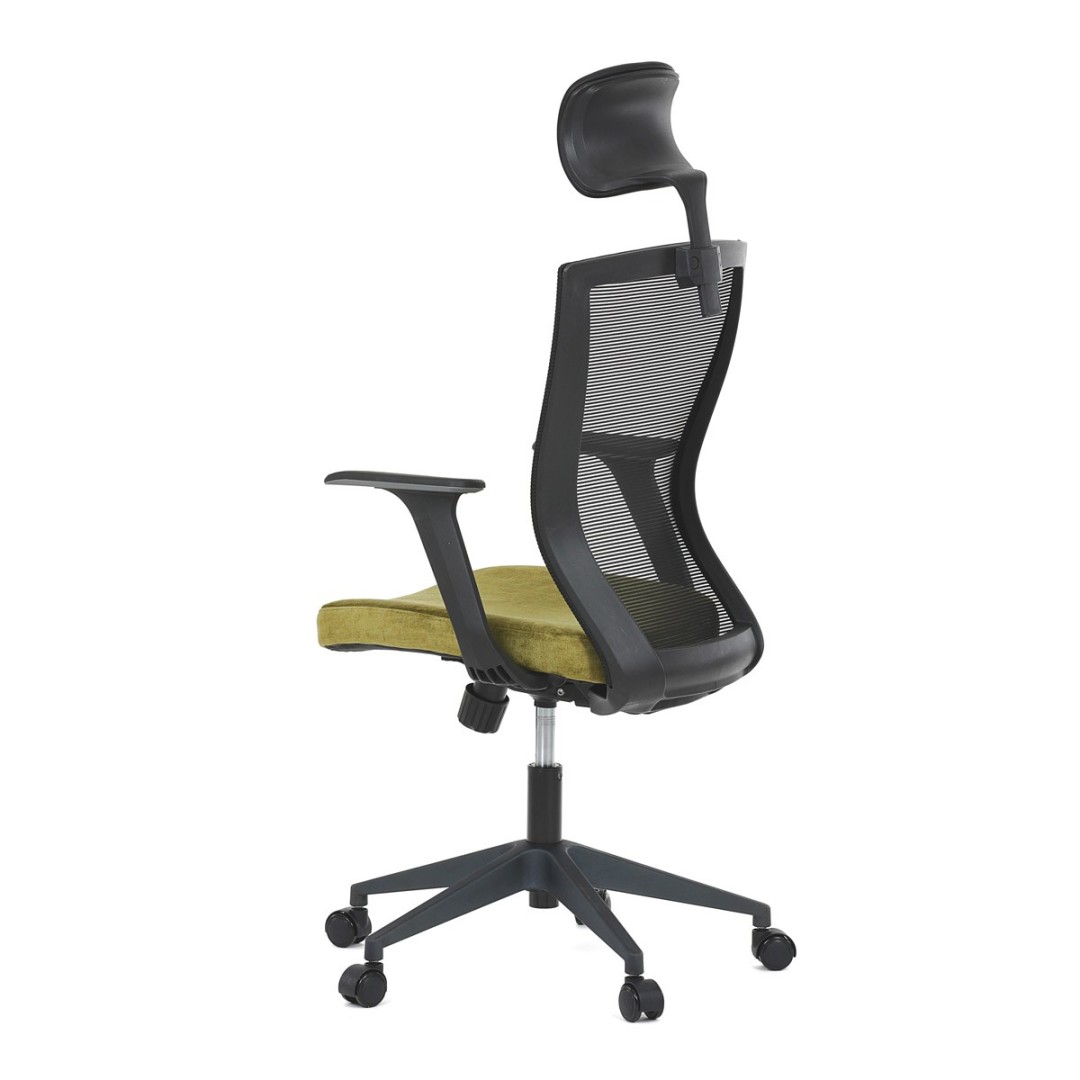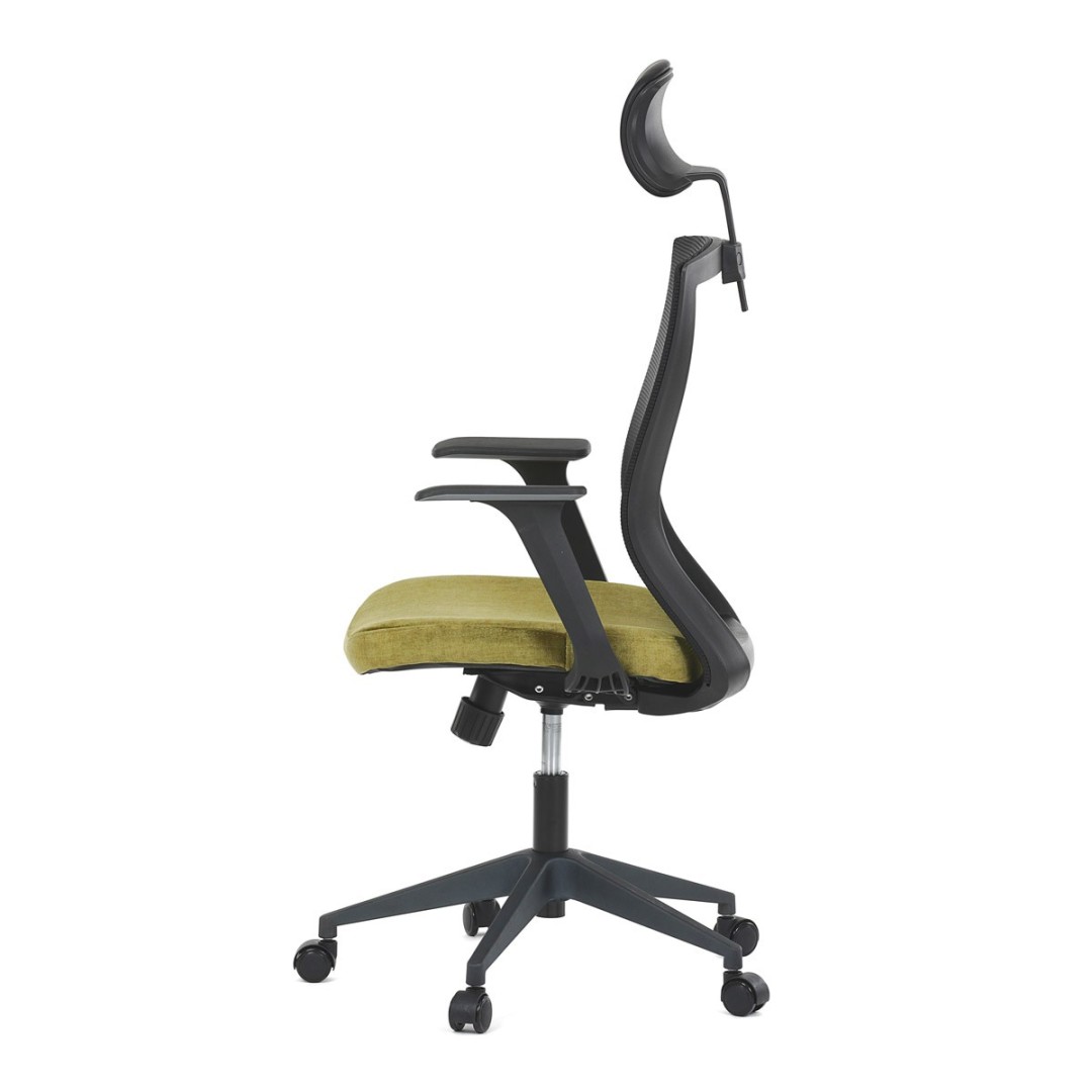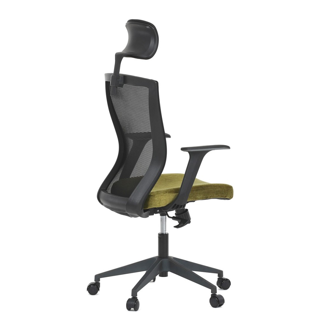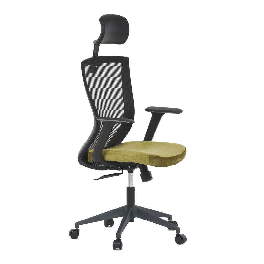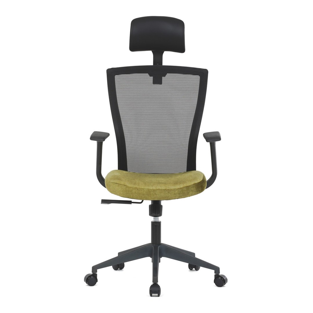 Kancelářská židle, černá MESH síťovina, světle zelená látka, houpací mechanismus, plastový kříž, kolečka pro tvrdé podla