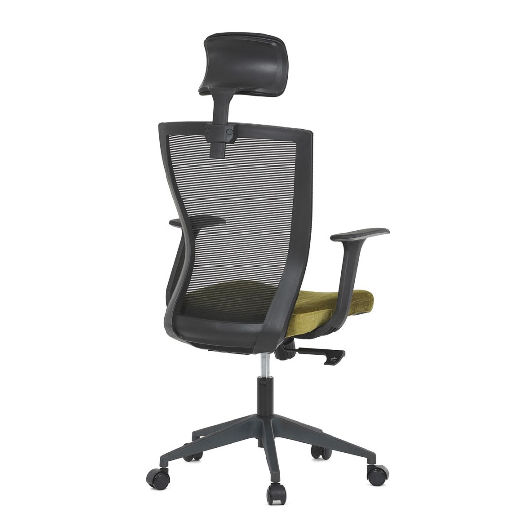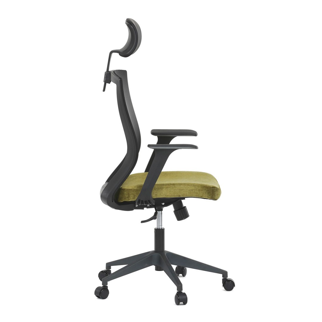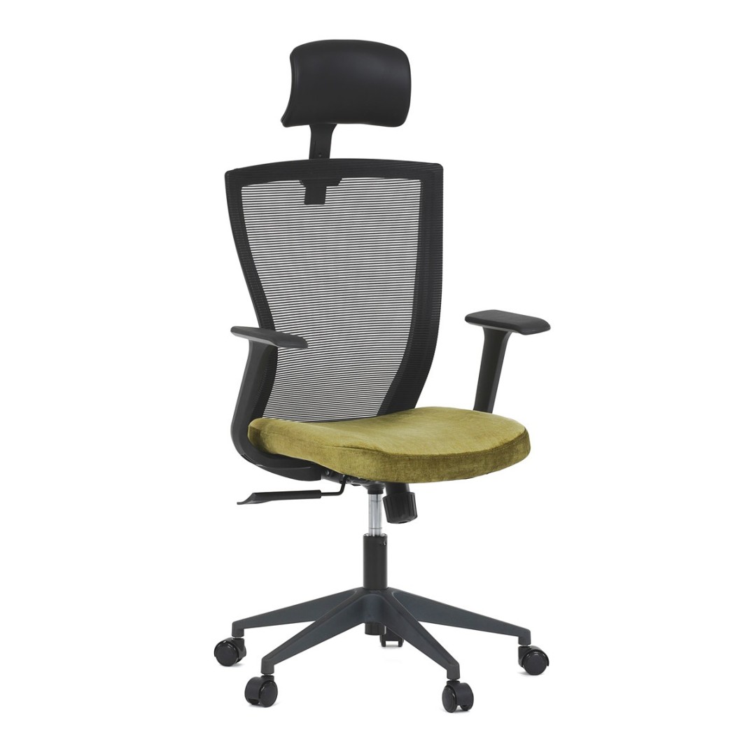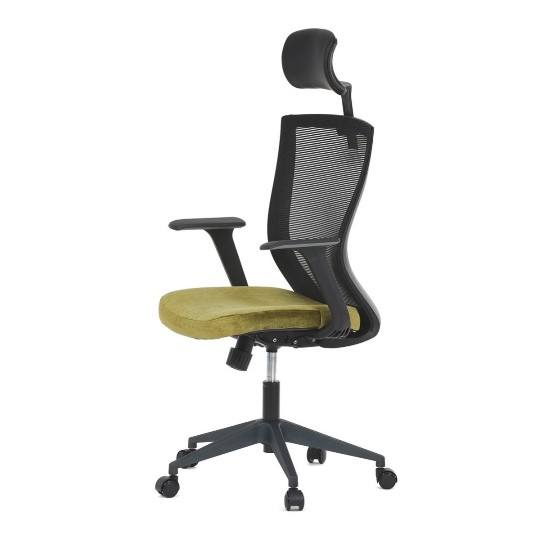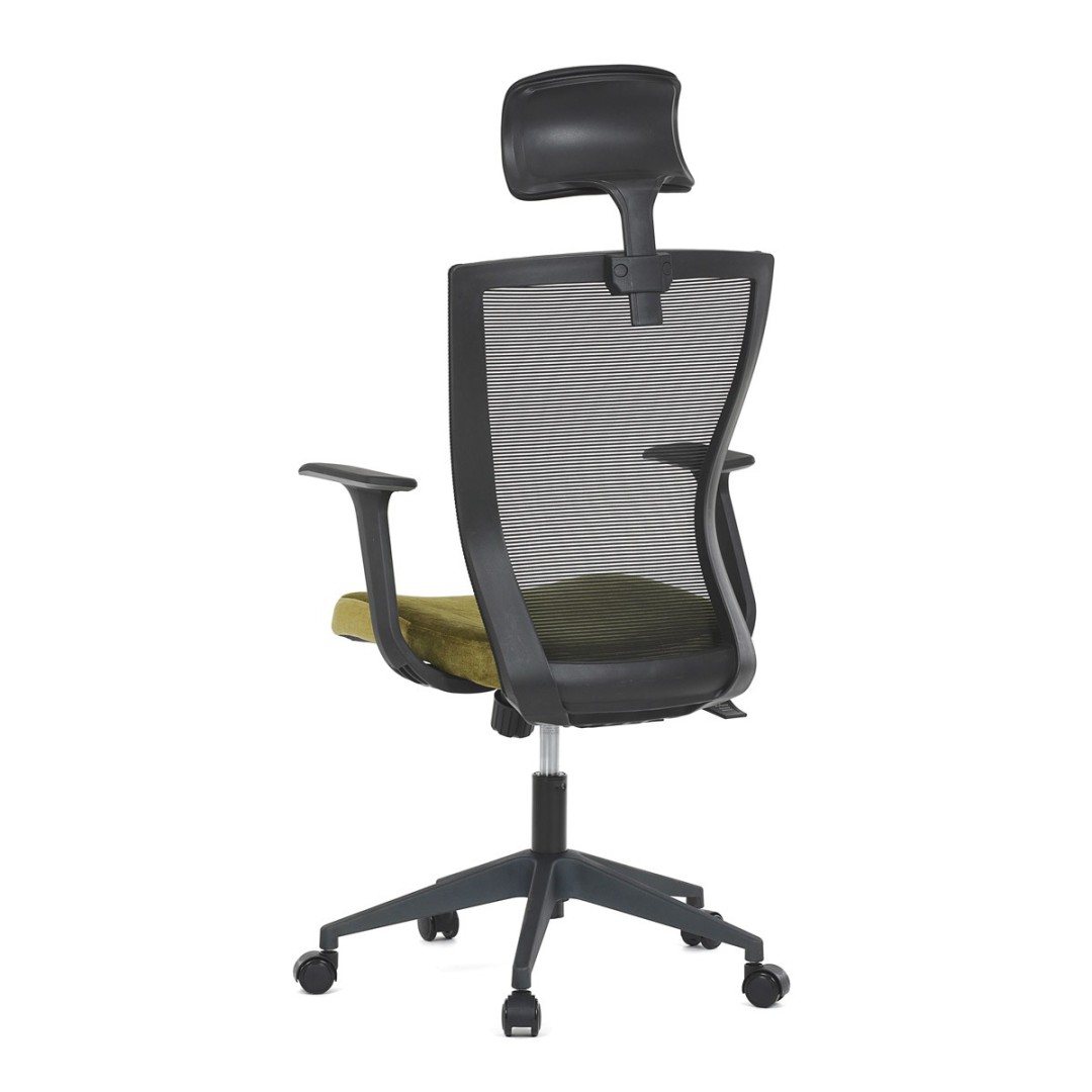 Kancelářská židle, černá MESH síťovina, světle zelená látka, houpací mechanismus, plastový kříž, kolečka pro tvrdé podla