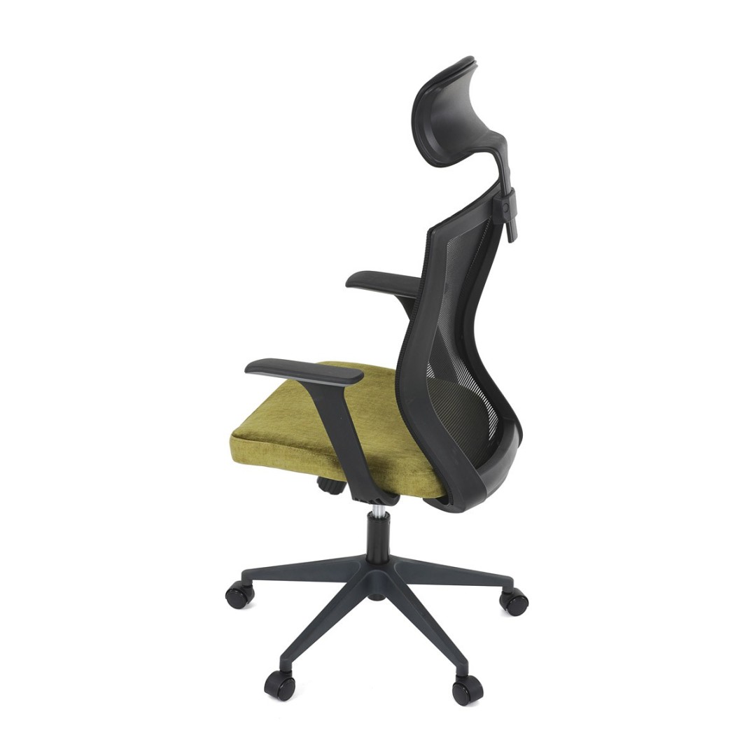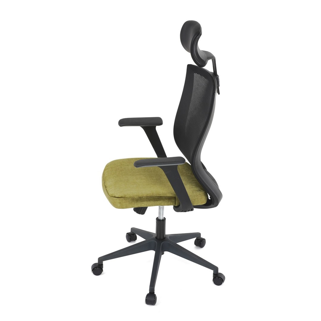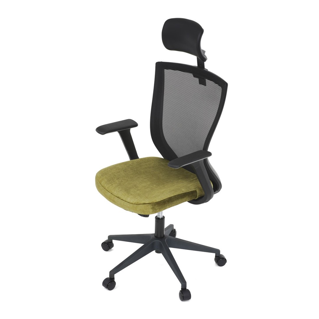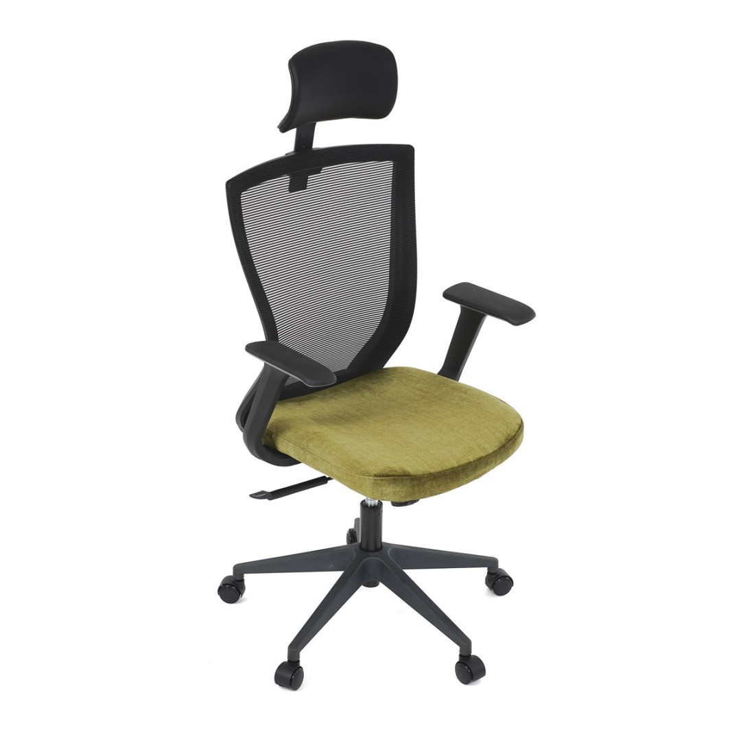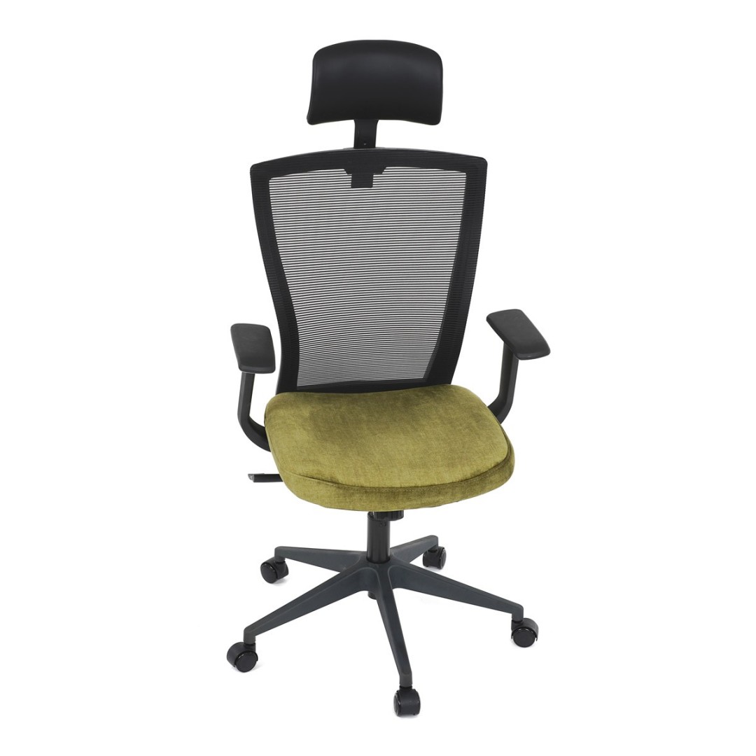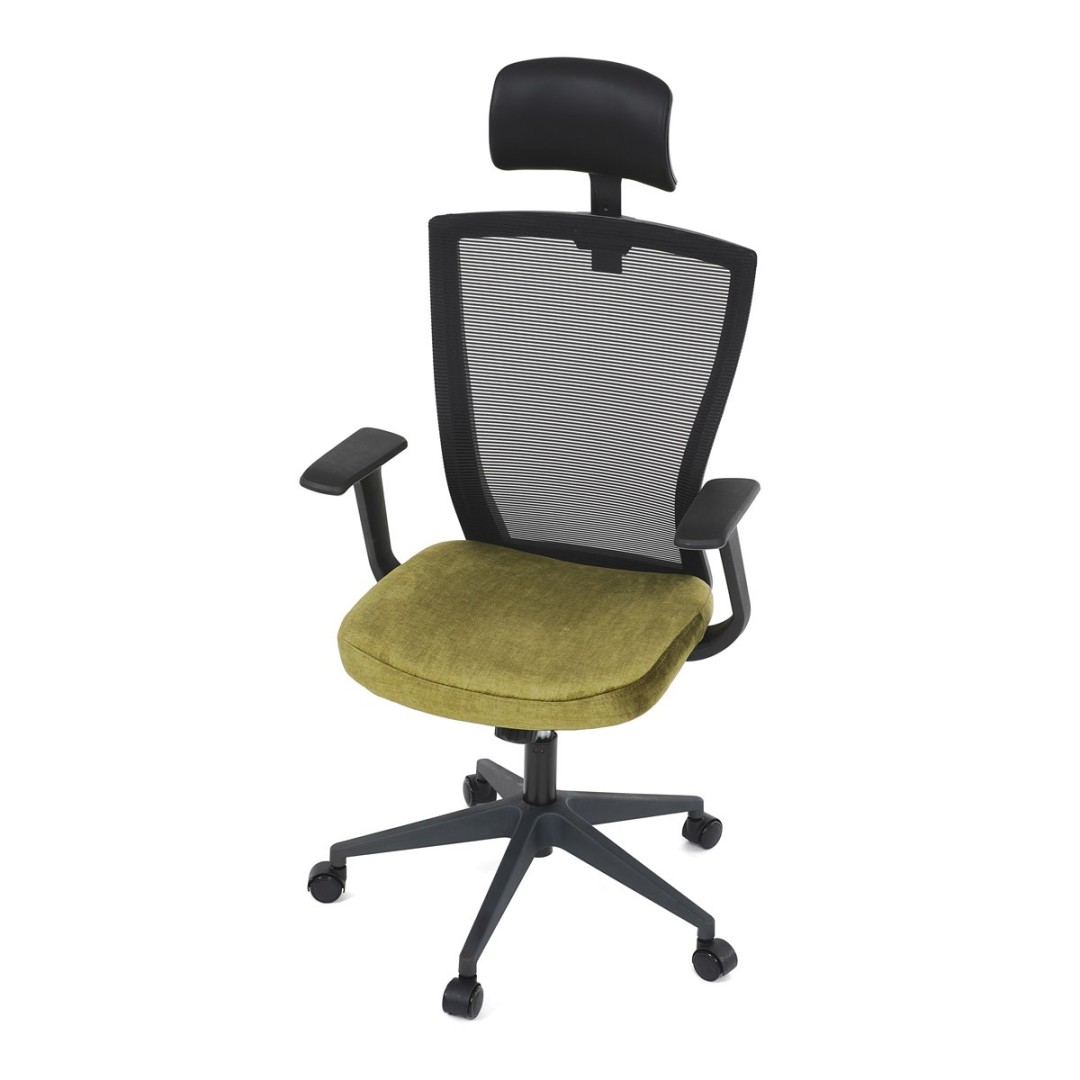 Kancelářská židle, černá MESH síťovina, světle zelená látka, houpací mechanismus, plastový kříž, kolečka pro tvrdé podla