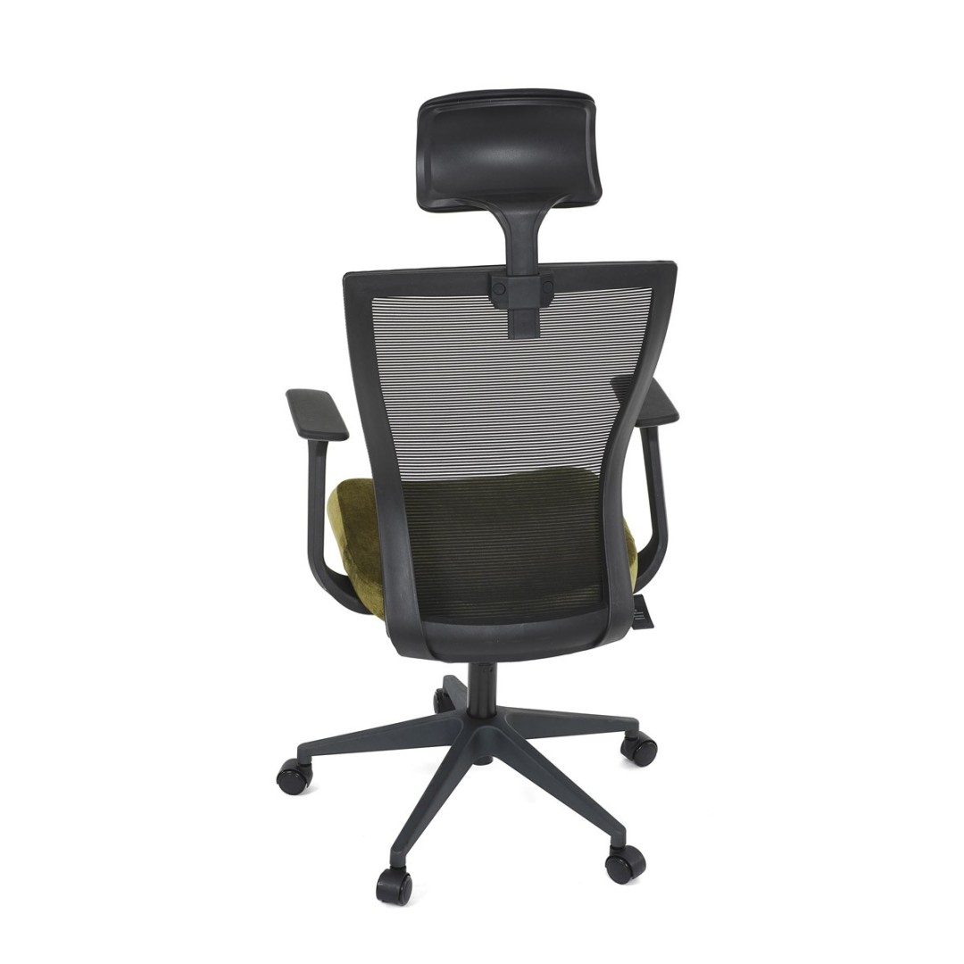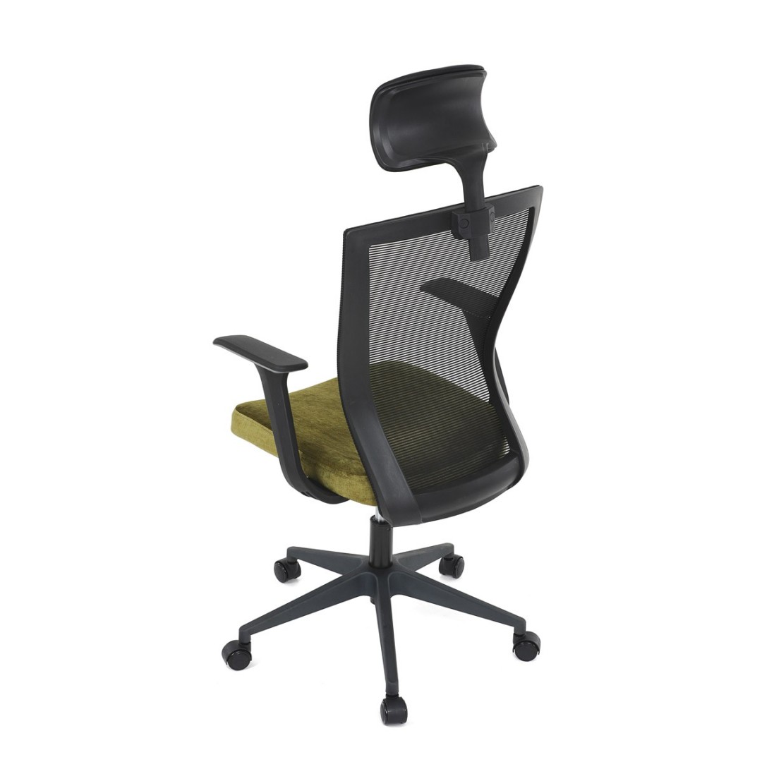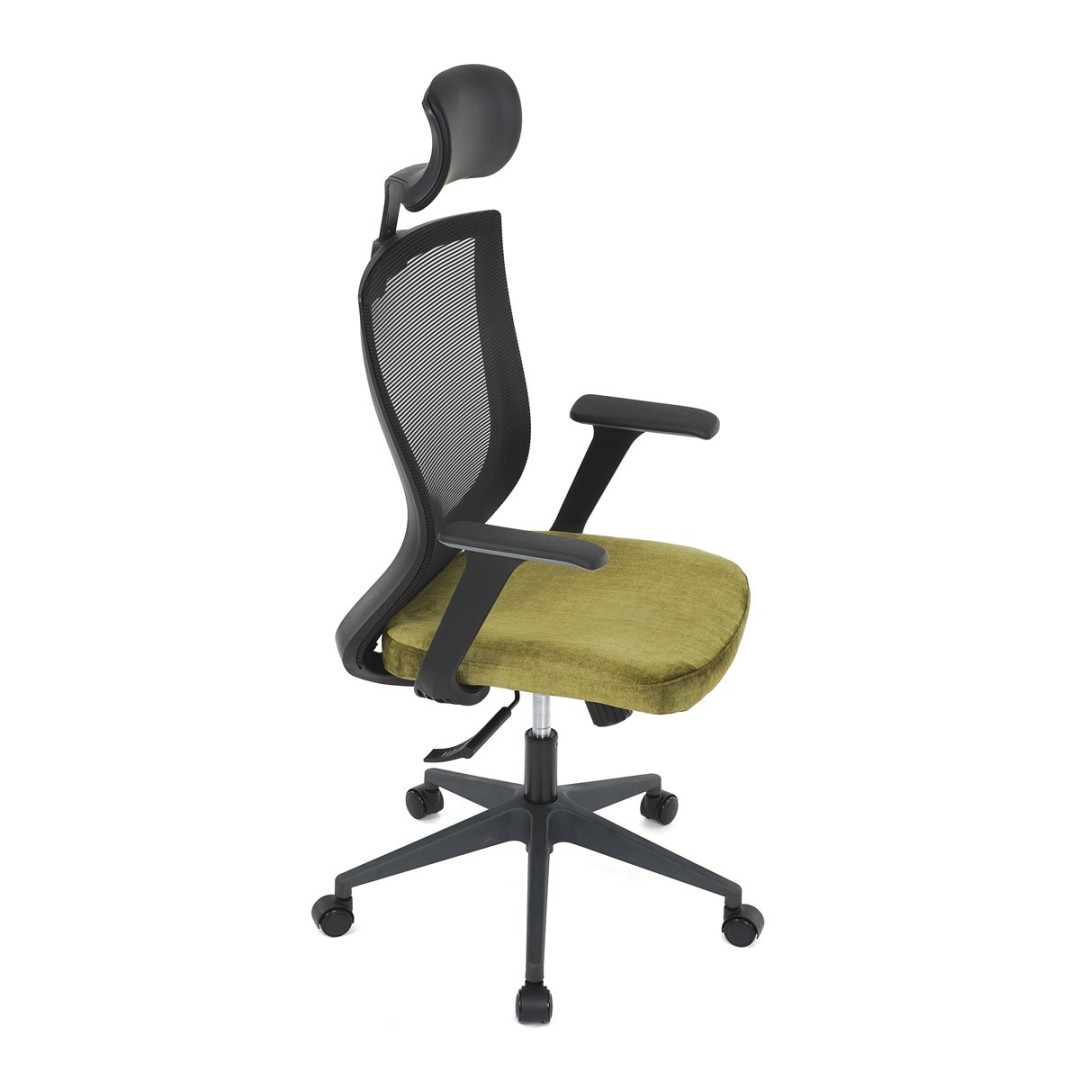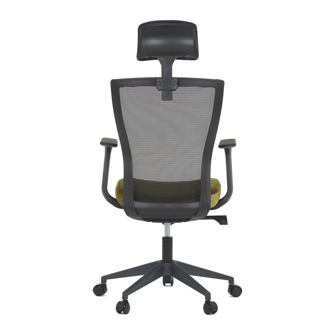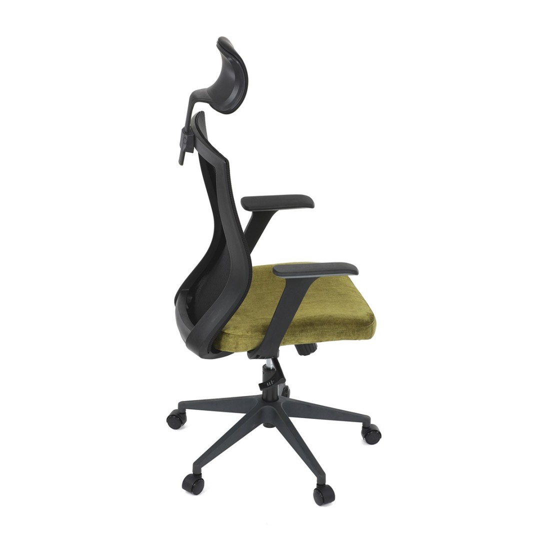Kancelářská židle, černá MESH síťovina, světle zelená látka, houpací mechanismus, plastový kříž, kolečka pro tvrdé podla