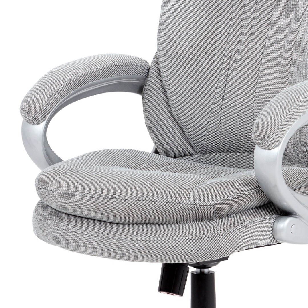 Moderní kancelářská židle potažená pololesklou šedostříbrnou látkou vzor pepito. Díky ultra pohodlnému sedáku a opěráku s výjimečným polstrováním, které jsou stylově tvarované, s elegantním prošitím a se super měkkým podhlavníkem se budete cítit jako v business class nejlepší letecké společnosti.
