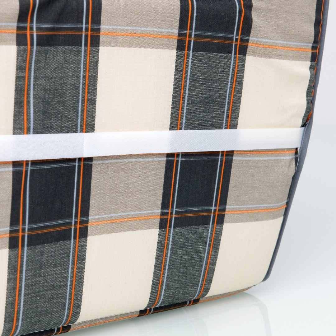 Opěrka na 2místnou lavici na zahradní nábytek. Uchycení opěrky pomocí suchého zipu. Potah je nesnímatelný.