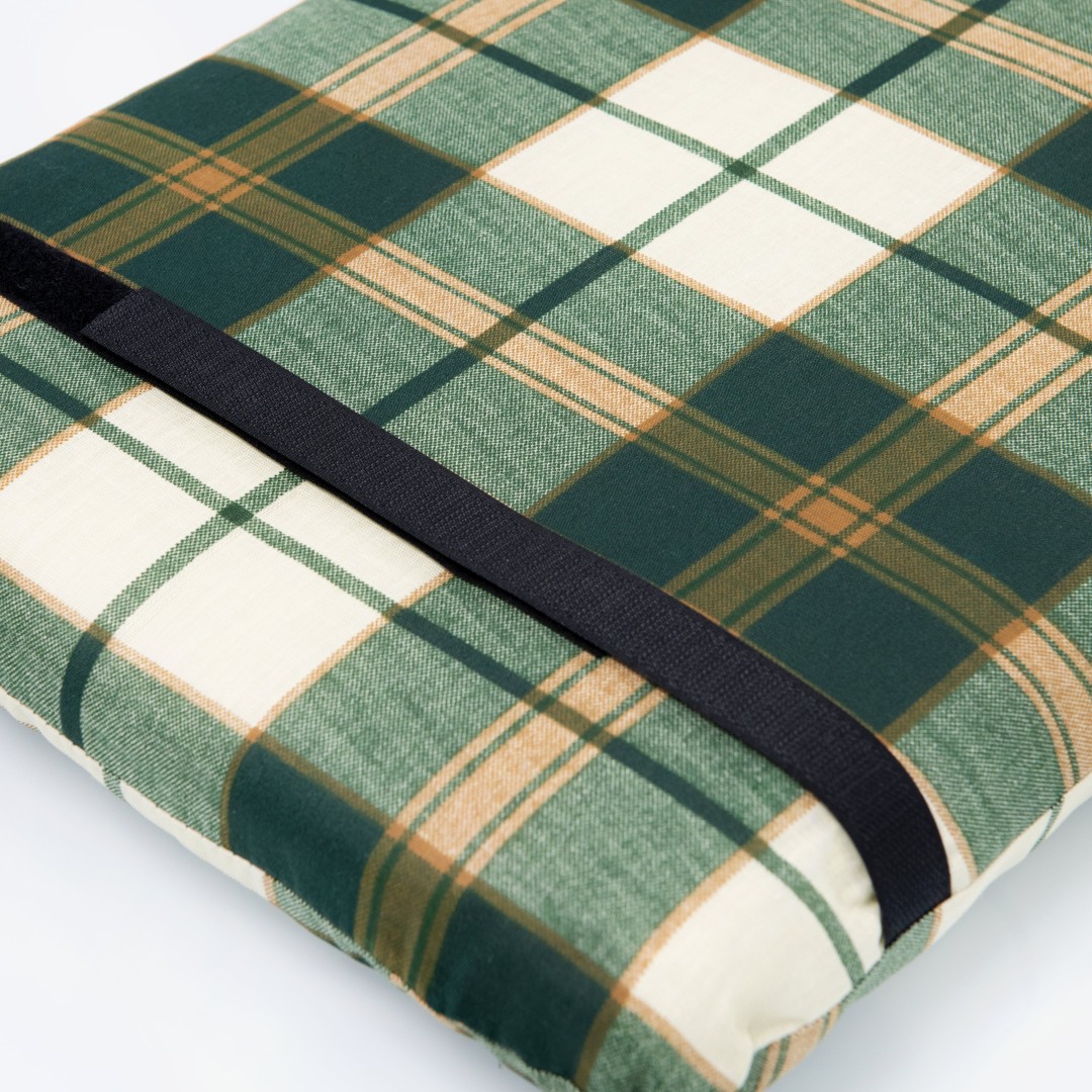 Opěrka na 3-místnou lavici na zahradní nábytek. Uchycení opěrky pomocí suchého zipu. Potah je nesnímatelný.