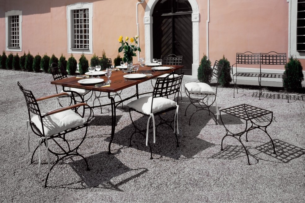 Kovový nábytek je v zahradách dlouholetým fenoménem. Konstrukce i povrchová úprava nábytku IRON – ART je navržena tak, aby bylo minimalizováno riziko rzi. První vrstva je tvořena zinkovou úpravou – metalizací, druhá kvalitní polyesterovou vypalovanou práškovou barvou s ochranným UV filtrem.