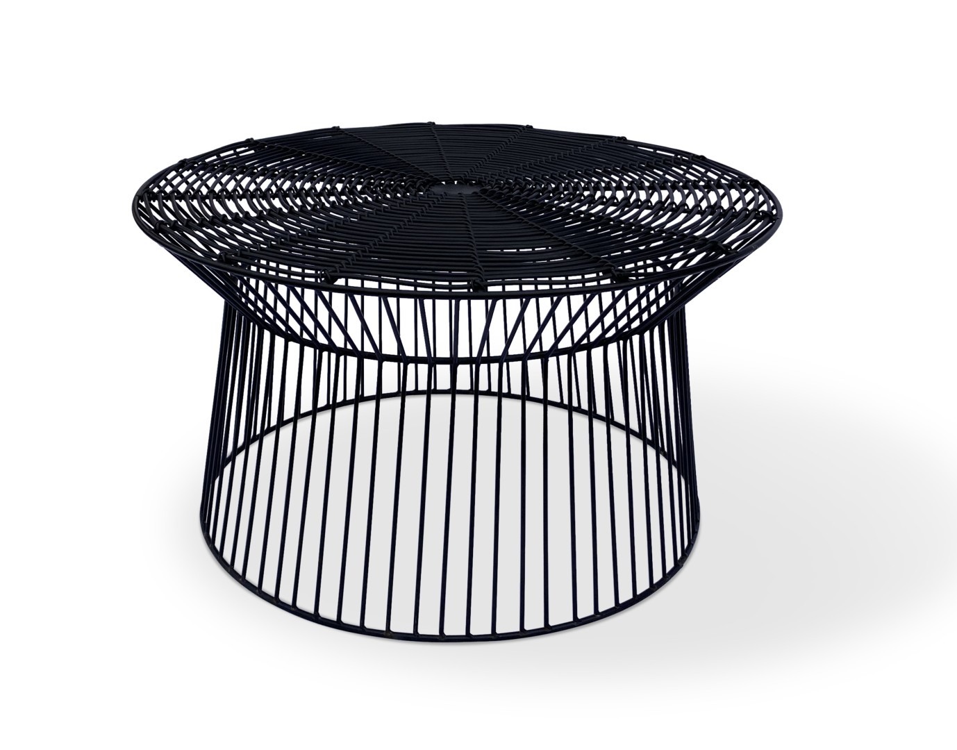 Kulatý kovový zahradní stolek v minimalistickém stylu. Zajímavě řešená kulatá deska stolu o průměru 76 cm z oceli a polypropylenu. Netradiční tvar celé konstrukce jistě obohatí všechny prostory, kde se stolek rozhodnete využít. Kovová konstrukce byla ošetřena práškovým lakem proti rzi.