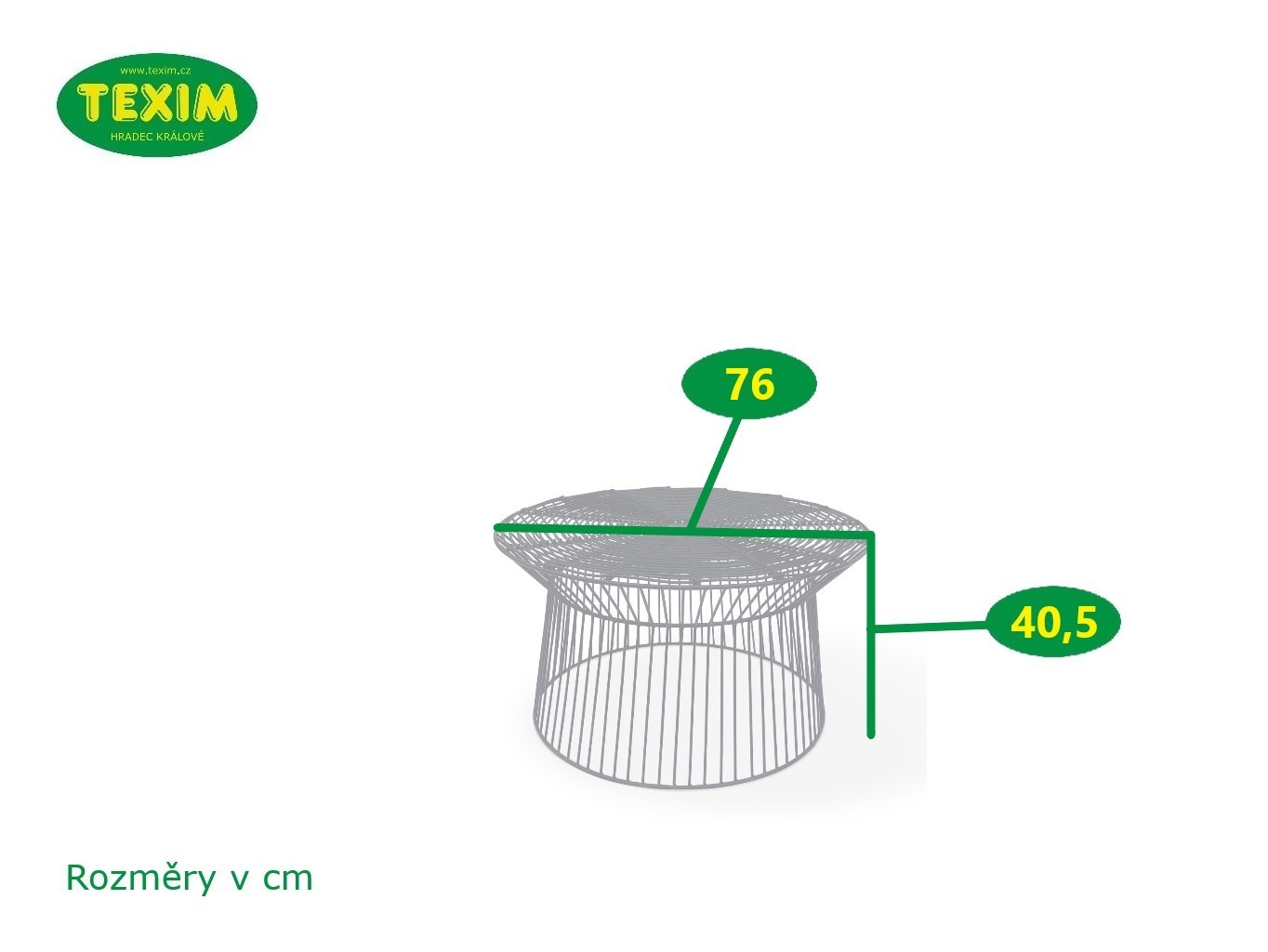 - rozměry: 76 cm (průměr) x 40,5 cm (Výška)
