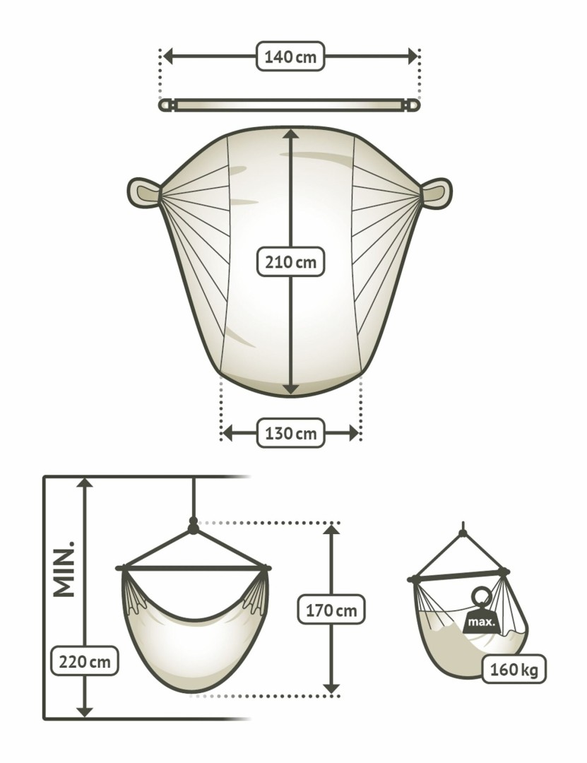 | látka: 100% organická bavlna / tyč: bambus / otočný čep: nerezová ocel | 160 kg | 170 cm | relaxační | 140 cm | latte | certifikovaný produkt |