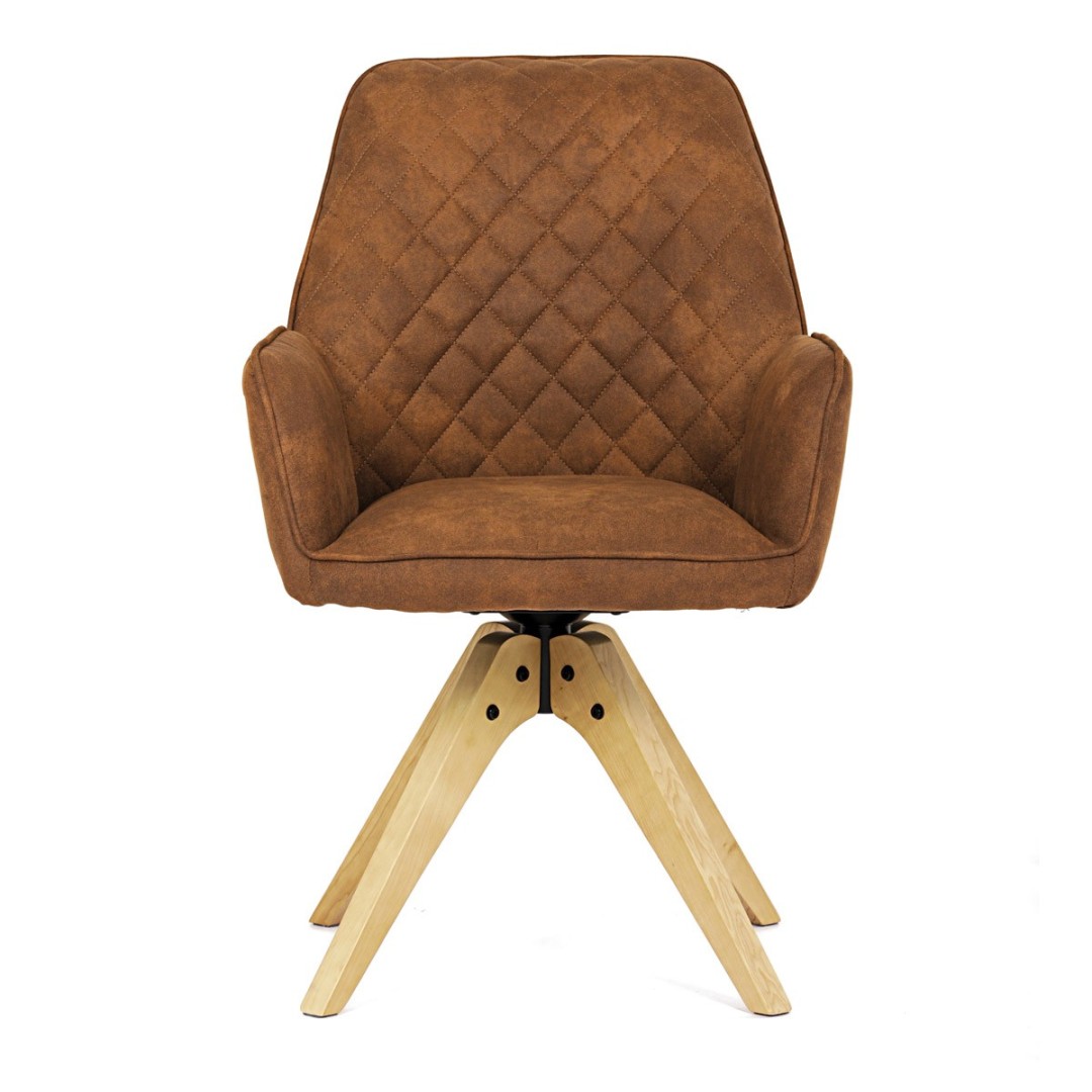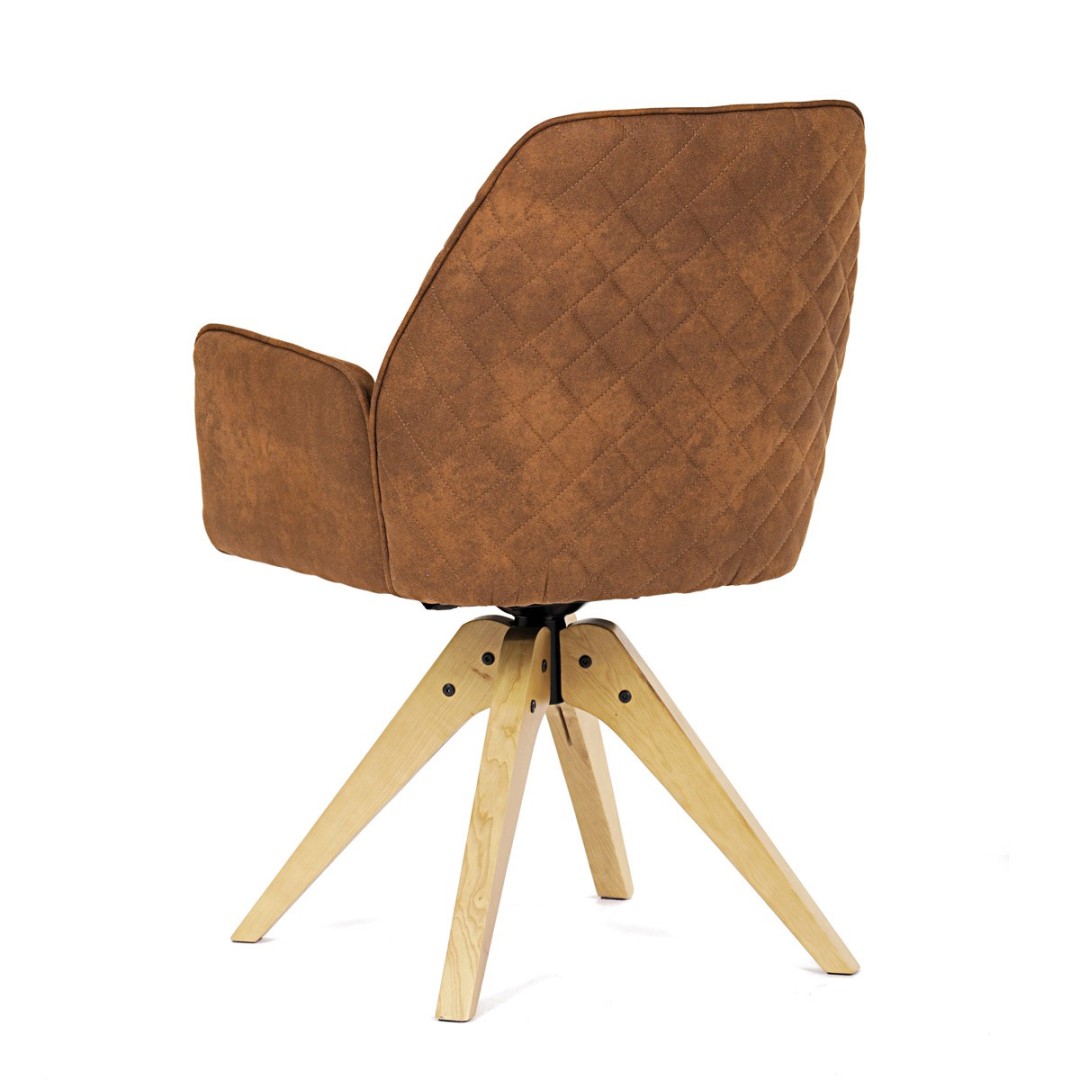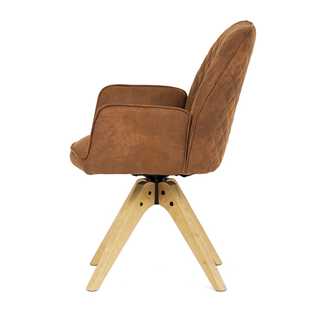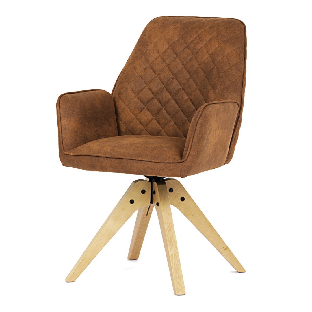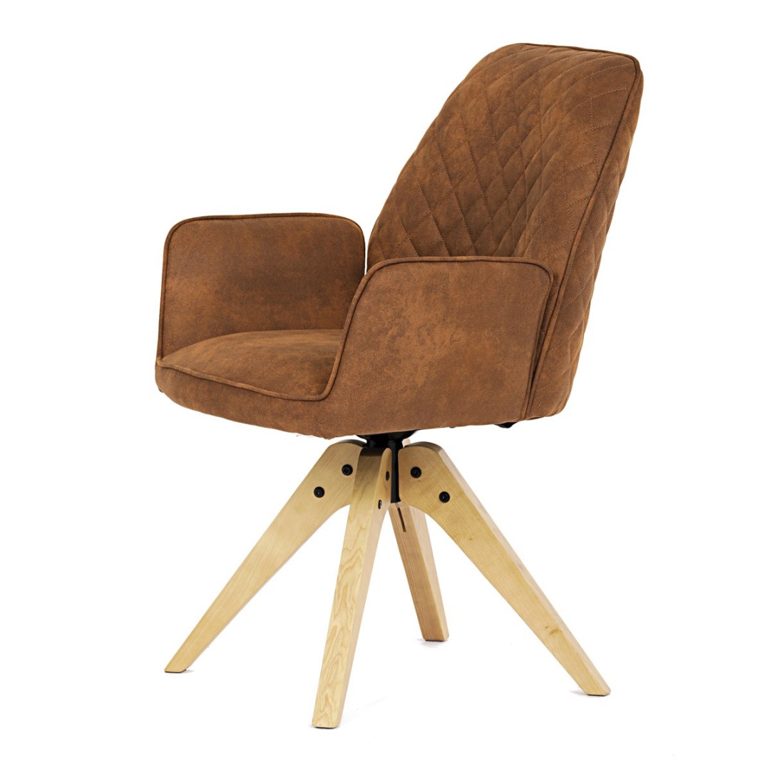 Jídelní židle s područkami potažená v textilii imitující broušenou kůži. Záda a opěrák jsou efektně prošity ve tvaru diamantu. Barva prošití je v barvě potahového materiálu.